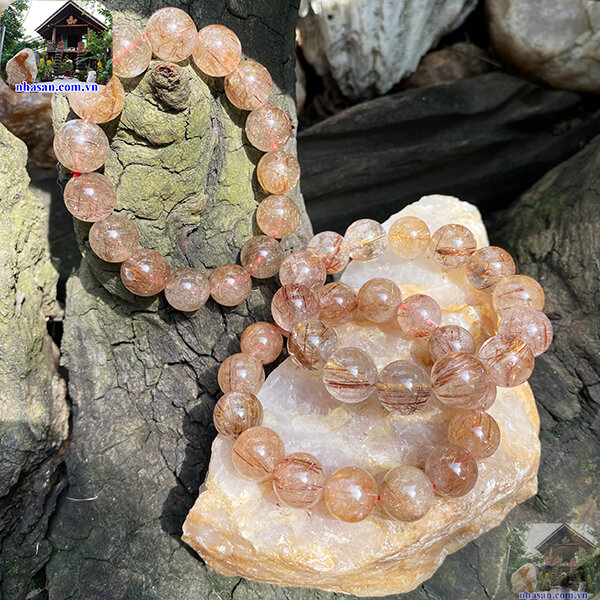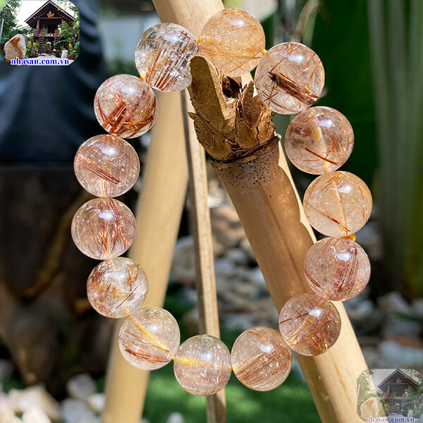 Vòng Tay Đá Thạch Anh Tóc Đỏ 14 Ly