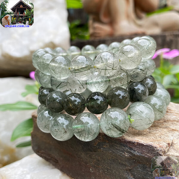 - Giá bán vòng tay đá thạch anh tóc xanh tuỳ thuộc vào đường kính của hạt vòng và sản phẩm có nhiều tóc hay không.