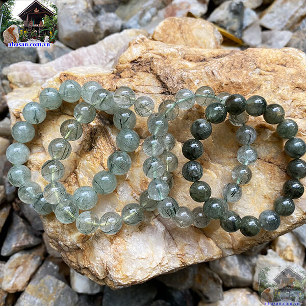Vòng đeo tay đá Thạch Anh Tóc Xanh thuộc hành Mộc.