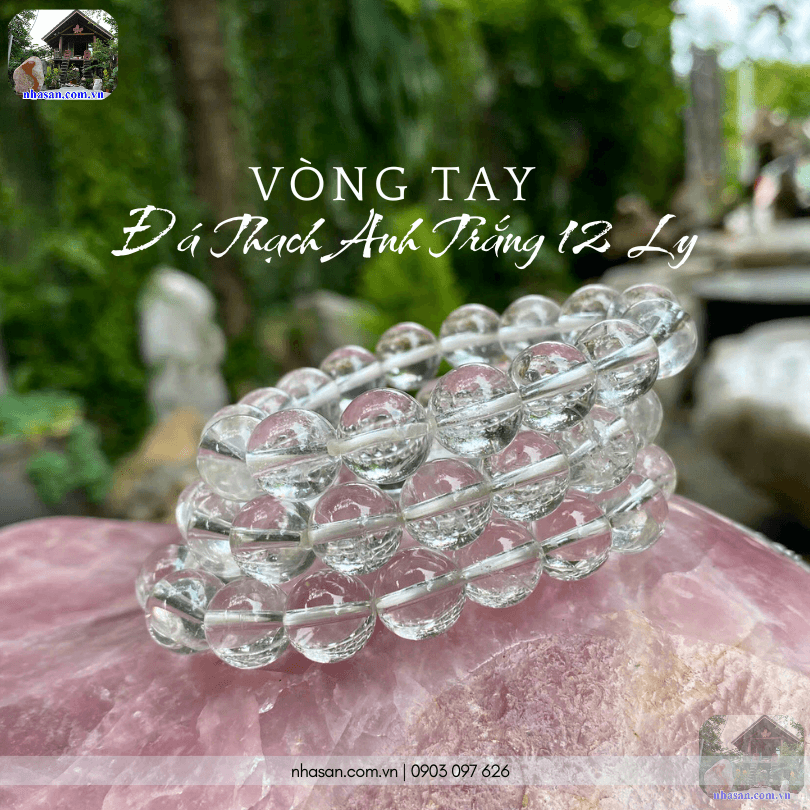 ►Mô Tả Sản Phẩm: Vòng tay đá thạch anh trắng 12ly