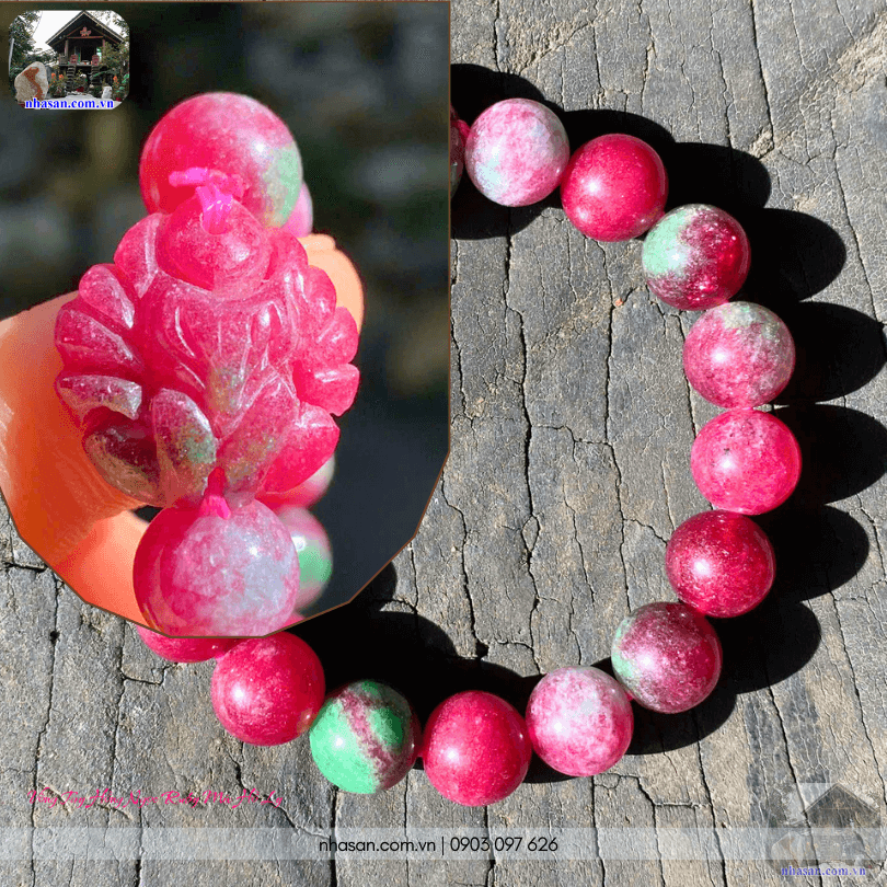 Chiếc vòng tay hồng ngọc Ruby 10ly mix hồ ly là sự kết hợp hoàn hảo giữa vẻ đẹp quý phái của đá quý tự nhiên và ý nghĩa phong thủy sâu sắc. Với tông màu hồng ruby rực rỡ xen lẫn các vân màu xanh độc đáo (thường là Zoisite - đá mẹ của Ruby), đây không chỉ là một món trang sức nổi bật mà còn là vật phẩm phong thủy chiêu tài, hút lộc, và đặc biệt là khai vận tình duyên.