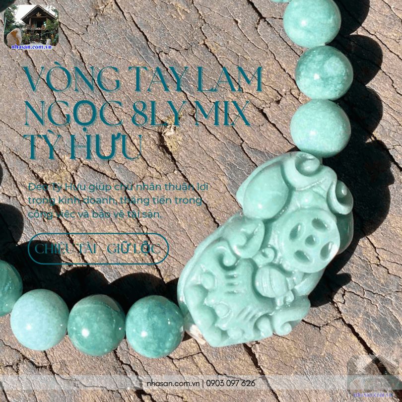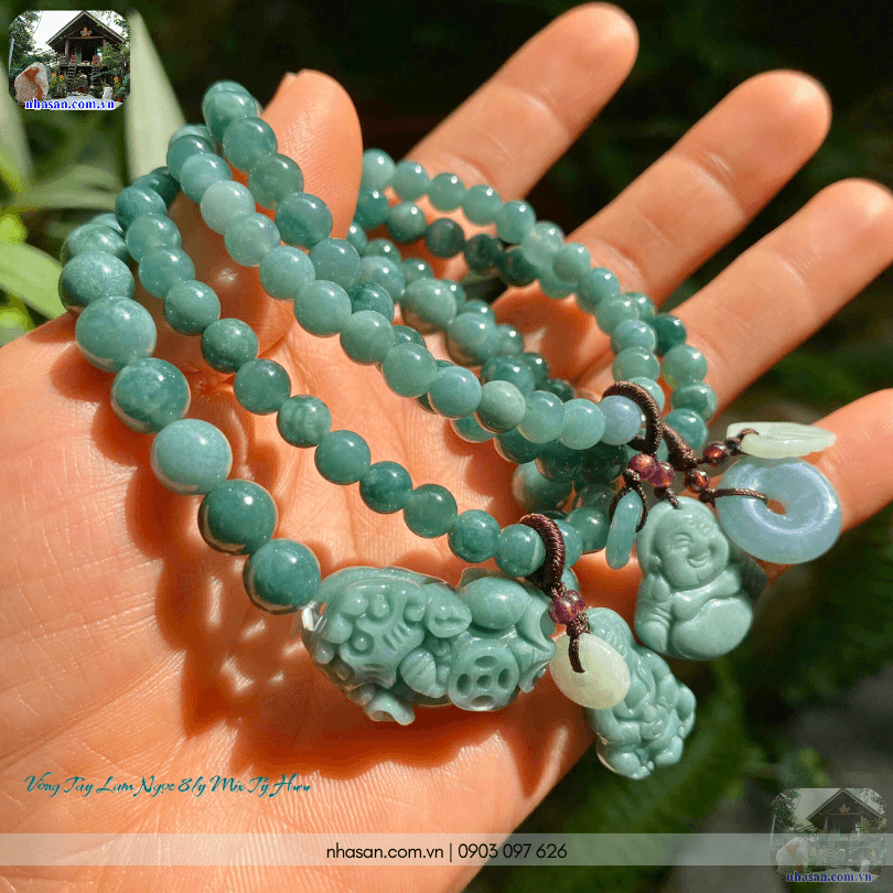 - Tên sản phẩm: Vòng tay lam ngọc 8ly mix tỳ hưu