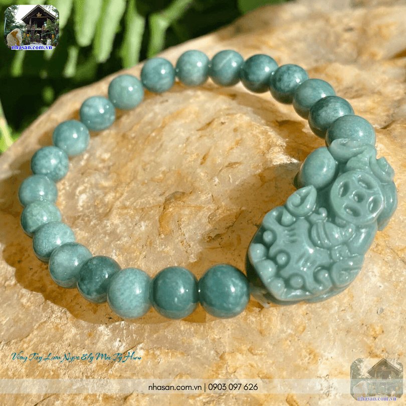 Vòng tay lam ngọc 8ly mix tỳ hưu