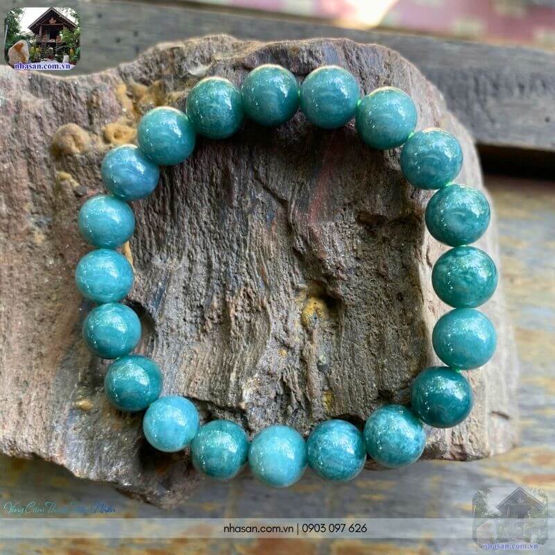 Vòng ngọc lam 7.5ly mix charm lu thống