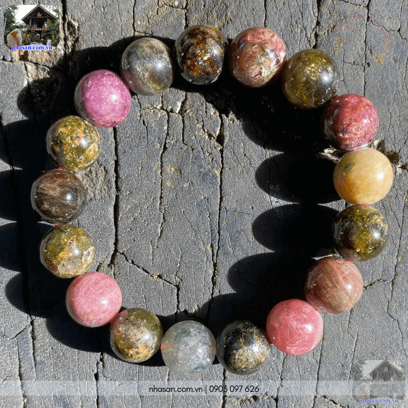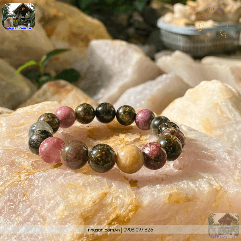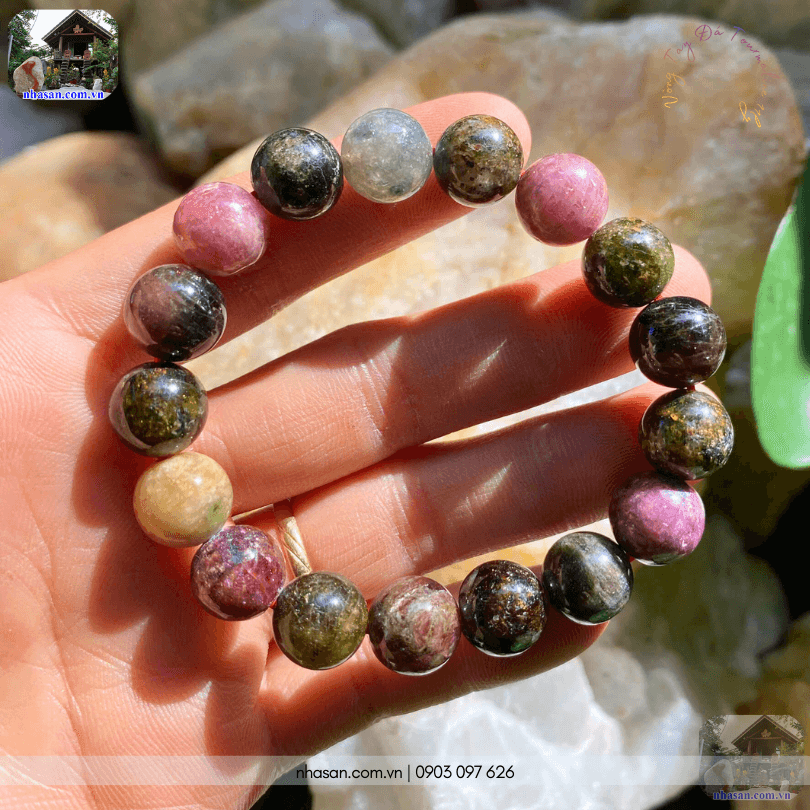Vòng tay đá tourmaline 11ly đa sắc dưới ánh nắng tự nhiên